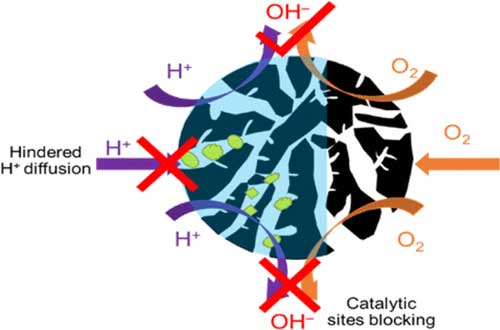 微生物燃料電池的長期運行會導(dǎo)致活性炭空氣陰極性能明顯降低。微生物燃料電池可以在廢水處理期間通過使用產(chǎn)電菌從有機物中提取電力來收集能量。由產(chǎn)電菌通過氧化有機物釋放電子,并通過外部電路轉(zhuǎn)移到陰極,在那里通常發(fā)生氧氣還原。微生物燃料電池中使用空氣陰極來減少用于處理的能量,從而避免需要充水。活性炭由于催化活性高,成本低,因此是電池中空氣陰極的有效氧還原反應(yīng)的催化劑。