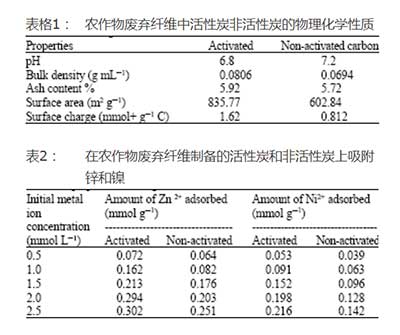 由農(nóng)作物纖維制備的活性炭已經(jīng)用于在初始金屬離子濃度范圍內(nèi)吸附Ni2+和Zn2+。從結(jié)果中,發(fā)現(xiàn)金屬離子的吸附容量為:Zn2+>Ni2+。這一結(jié)果表明,這種纖維是一種無商業(yè)價(jià)值的農(nóng)業(yè)副產(chǎn)品,可用于清除水性廢水中的金屬離子。因此,通過這一過程,用于常規(guī)污水處理的商業(yè)活性炭或其他化學(xué)品所花費(fèi)的資金要少很多并且難呢過有效利用廢物。